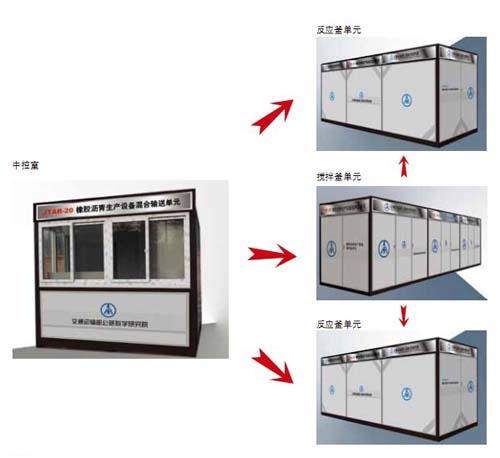 交通运输部公路科学研究院与北京嘉格伟业筑路科技有限公司合作研制的JTAR系列橡胶沥青生产设备,可满足不同的客户需求和生产条件。JTAR系列橡胶沥青生产设备适用于人民交通出版社于2008年4月发行的《废胎胶粉沥青及混合料设计施工指南》中规定的“湿法”工艺的橡胶沥青生产,同时也适用于生产废胎胶粉改性沥青。