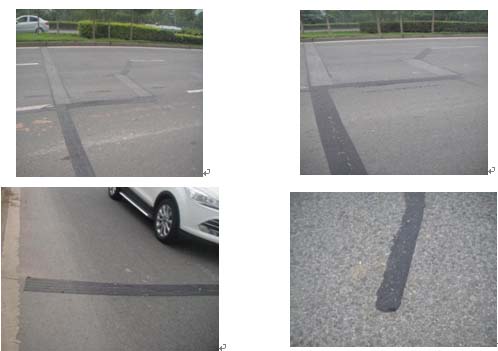安徽滁州使用嘉格贴缝带的试验段是5月底进行的,开放交通57天后,已基本压平(贴缝带的上表面与路面平齐)。