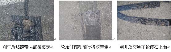 在贴缝带与路面未很好融合时,刹车易造成贴缝带的流失。