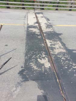 二、第二种材料RS贴缝带:清扫后,使用40CM宽RS贴缝带直接铺在伸缩缝处,并进行压实处理: