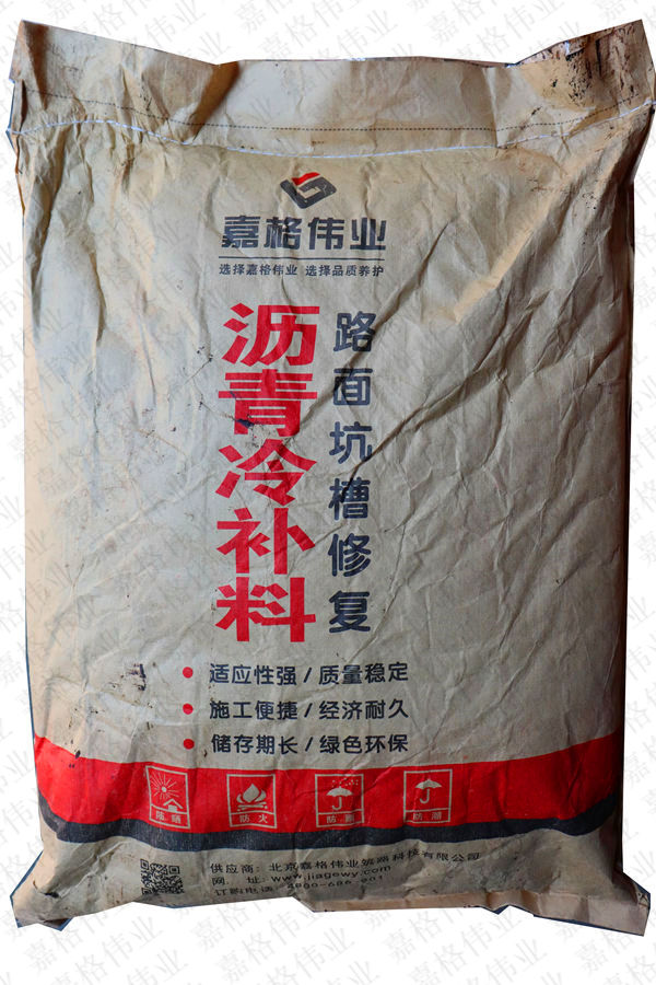 冷补料是目前使用较多的一种路面坑槽填充料。但现有的冷补料在使用时存在着如下缺点:(1)配方设计不够合理、科学,成本较高;(2)修补质量不好,造成重复修补,浪费材料及人工费;(3)在使用过程中发现坑槽修补完以后强度低,耐久性差,大部分使用不超过三个月,个别的只使用几天就会脱落,浪费了大量的原材料,增大了施工单位的工程量,也造成了非常大的经济损失。