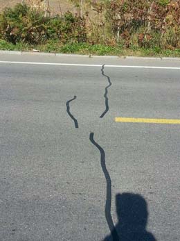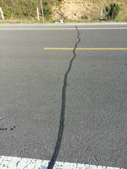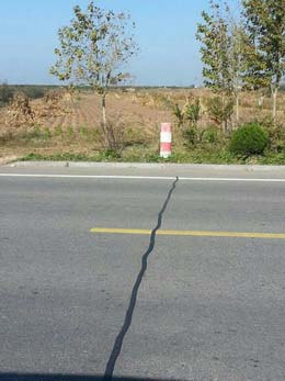 2014年10月,我公司售后服务技术人员对我公司销往辽宁的RS贴缝带施工效果进行了回访和评估,重点回访了辽宁滨海公路瓦房店段,回访中发现RS贴缝带与路面结合密实,材料嵌入路面缝隙中,无脱落等现象,效果非常好,得到了业主单位的广泛认可。以下为辽宁滨海公路瓦房店段RS路面贴缝带施工1个月后的实景效果拍摄: