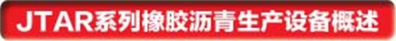 北京嘉格伟业筑路科技有限公司在充分借鉴国内外现有橡胶沥青生产设备经验的基础上,结合我国公路工程施工的特点,公司自主研发了JTAR系列橡胶沥青生产设备,该系列产品可满足不同的客户需求和生产条件。JTAR系列橡胶沥青生产设备适用于人民交通出版社于2008年4月发行的《废胎胶粉沥青及混合料设计施工指南》中规定的“湿法”工艺的橡胶沥青生产。同时也适用生产废胎胶粉掺量低于15%(内掺)的胶粉改性沥青。