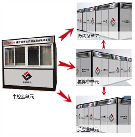 JTAR系列橡胶沥青生产设备采用集装箱式模块化设计,标准配置为四个单元: