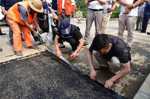 1、采用粘结力强的黏层油对地面处理,同时用抗裂贴对坑槽底部裂缝进行处理