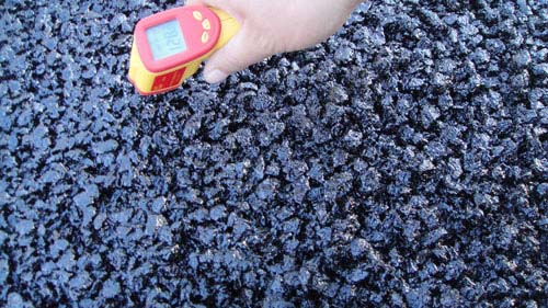 温拌橡胶沥青(混合料)针对橡胶沥青生产及施工工程中温度高、气味重、烟雾大的问题,我公司根据用户需求分别开发了温拌橡胶沥青和温拌橡胶沥青混合料的专用添加剂,可使橡胶沥青或混合料的生产温度分别降低20℃和30℃左右,大大减少烟气排放,同时不降低橡胶沥青的路用性能,2009 年温拌橡胶沥青混合料在北京长安街改造工程中得到应用,2010年温拌橡胶沥青在北京榆垡大街大修中得到应用。